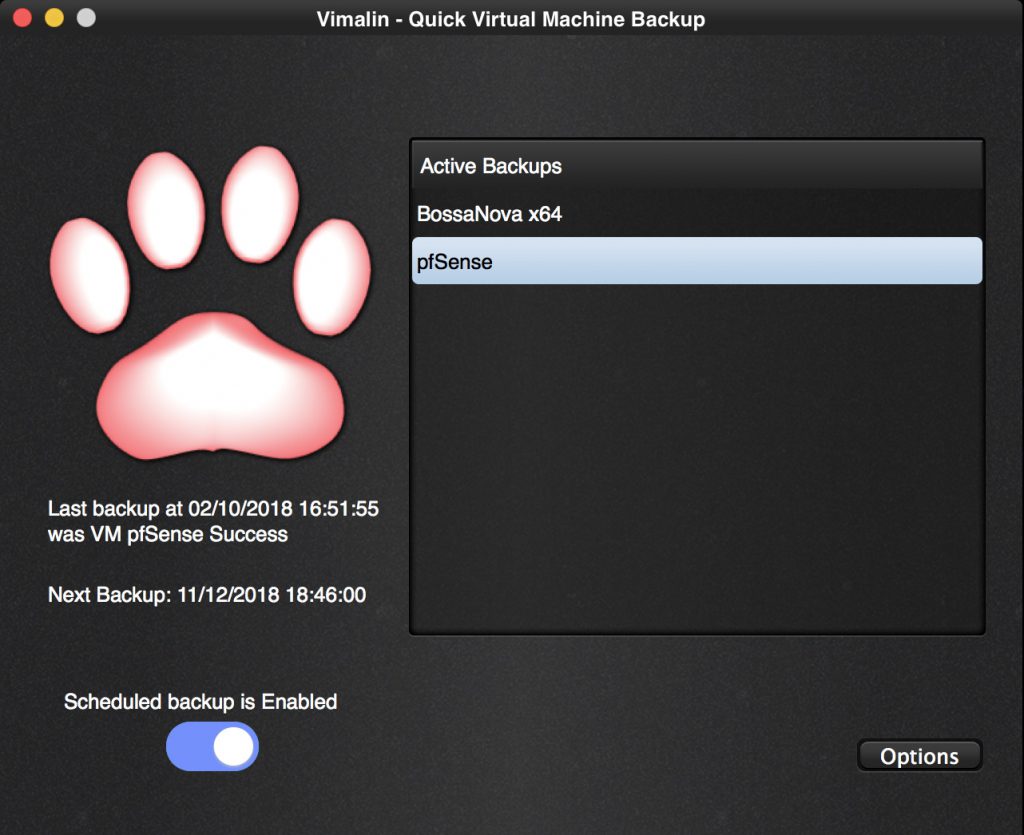 From the options button you can go to the options screen where you can configure and manage your backups.